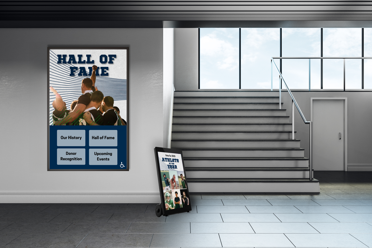 Best suited for athletic halls of fame, lobbies, museums, airports, briefing centers, and experiential community installations.