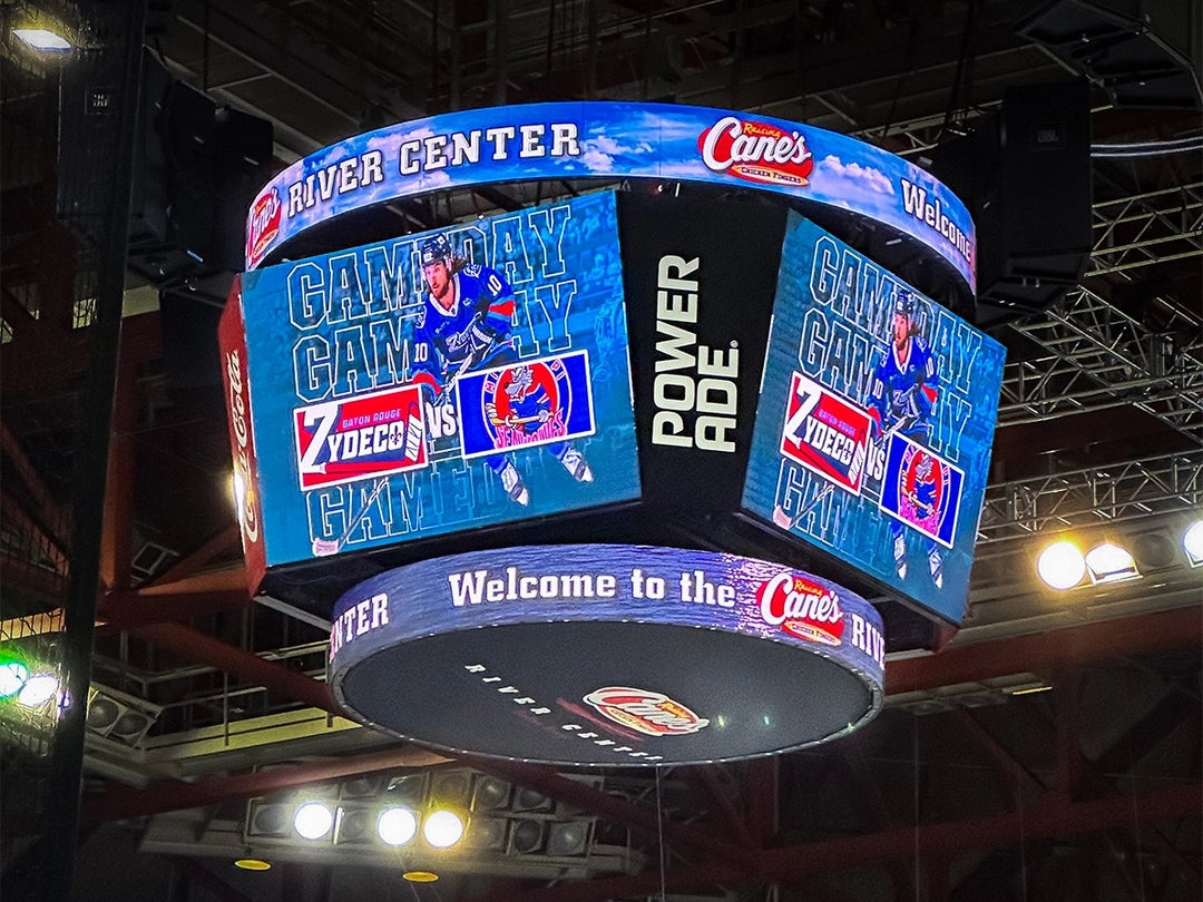 Deliver a fully immersive experience to every fan, everywhere. These displays feature wide viewing angles and vivid color! Our solutions range from custom video centerhungs, to simple scoreboard centerhungs.
