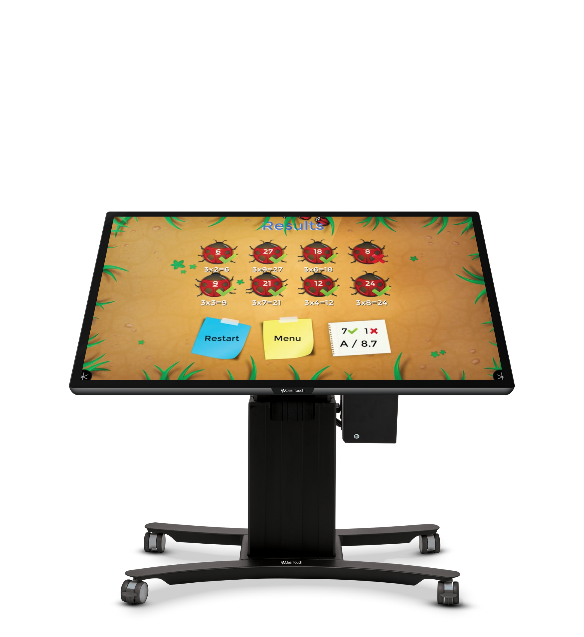 Purpose-built to support the 43″ Clear Touch® 7043XE, this stand ensures a stable, secure fit while maintaining mobility and functionality in small or specialized spaces.