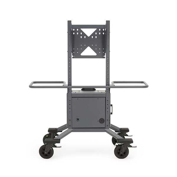 Unique frame allows you to configure your display cart with wheels to suit your preferences. Including a Device Shelf, Soundbar Mount, Battery, and Duel Charging Station.