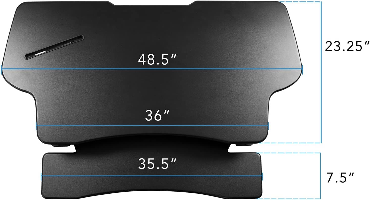 MI-7925 provides an easy, affordable way to work healthier by alternating between sitting and standing. This extra-wide standing desk converter measures 48" wide and can easily accommodate dual monitors. The gas spring-assisted lift mechanism allows you to raise and lower almost effortlessly in just seconds. Join the standing desk revolution today!
