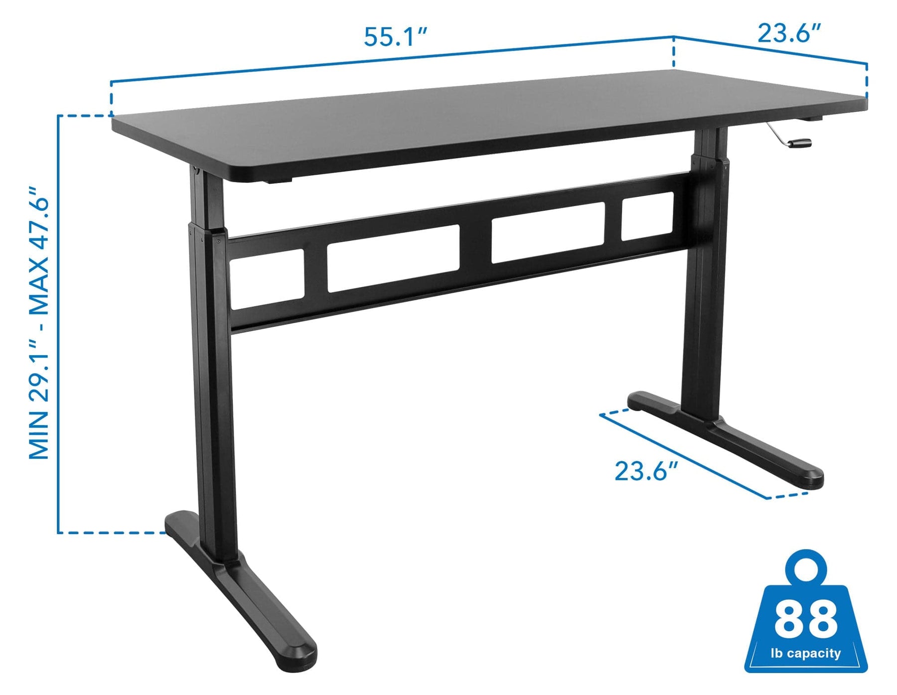 Hand Crank Standing Desk with 55" Tabletop