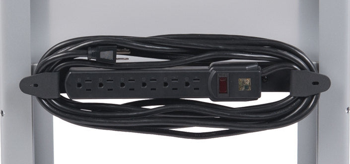 Our utility cart for teachers includes a 6-outlet power strip with a 20′ cord, ensuring easy access to power for charging devices and equipment, even when you’re not near electrical outlets.