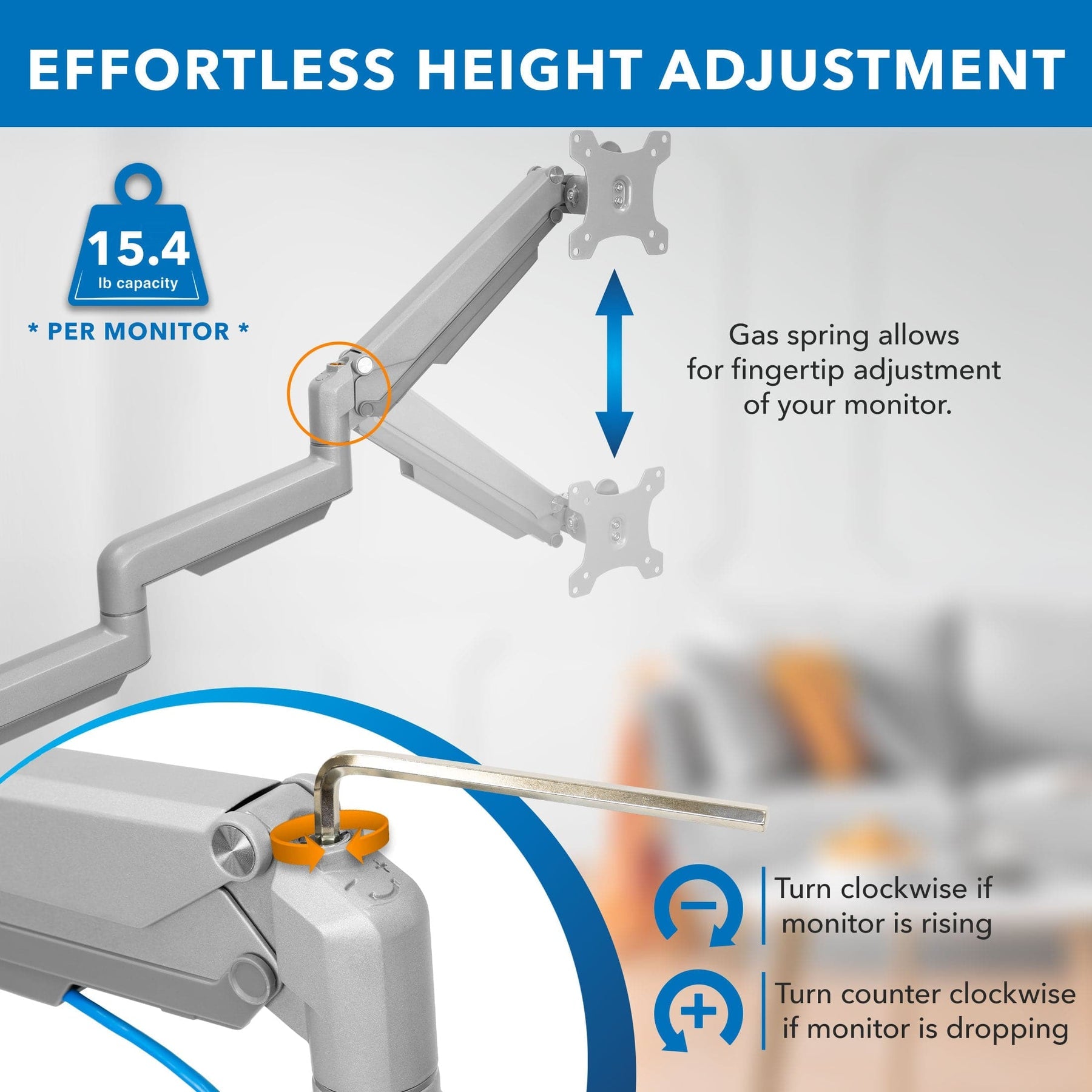 This triple monitor desk mount is a great addition to an ergonomic workspace, and provides the luxury of more desk room for other office essentials. Each VESA head bracket is compatible with 75mm x 75mm and 100mm x 100mm displays, and can hold 15.4 lbs. Swivel your monitors up to 180 degrees for portrait or landscape orientation, and tilt up or down 90 degrees. The cable management sleeves offer a clean, clutter-free look, while audio, USB 3.0 and USB-C ports built into the base keep you entertained and charge your devices while you work.